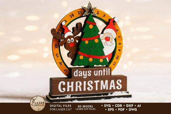 Layered 3D design for stunning detail. Engraved numbers from 1 to 25 for countdown. File formats: SVG, DXF, AI, EPS, PDF, CDR, DWG. Optimized for 3 mm, 3.2 mm, 4 mm, 4.2 mm. ย Can be painted, stained, or decorated for a personalized touch. Easy assembly.